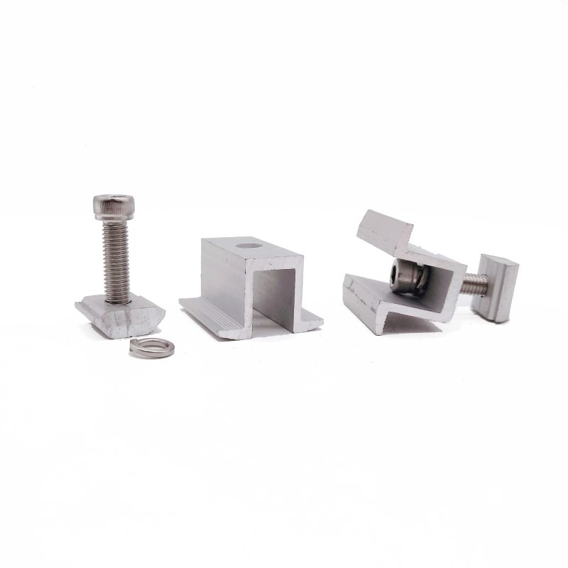 Solarclamp je ďalšie hliníkové príslušenstvo, ktoré sa používa na upevnenie solárnych panelov na hliníkové koľajnice. Svietidlo je zvyčajne vyrobené z hliníkovej zliatiny, ktorá má vysokú pevnosť a odolnosť proti korózii, čo môže zabezpečiť, že sa solárne panely nepoškodia alebo nekrútia.